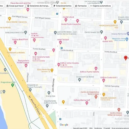This accommodation provides a kitchenette with all necessary utensils to prepare meals. The sushi bar Katsu Sushi Delivery is within short walking distance of the apartment. The nearest airport is Diego Aracena International, 40 km from Iquique, Ed. Matiz Cavancha, and Heroes de la Concepcion / Diego Portales bus station is 100 metres away.